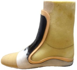 Pour un résultat optimal, un lit plantaire orthopédique complète la prescription. Celui-ci est adapté sur mesure pour le patient et fixé dans la chaussure.